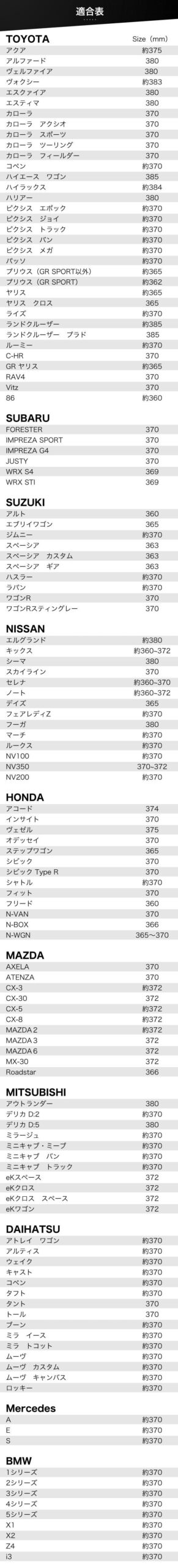 適合サイズと適合車種