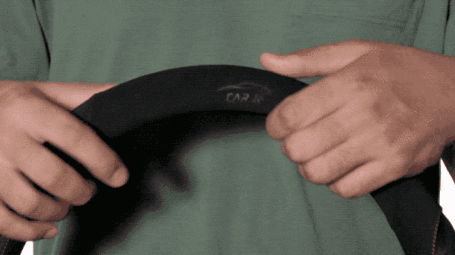 柔軟な皮素材としっかりとしたゴムの素材を組み合わせることで、着脱は簡単に行えるような設計を実現しました。